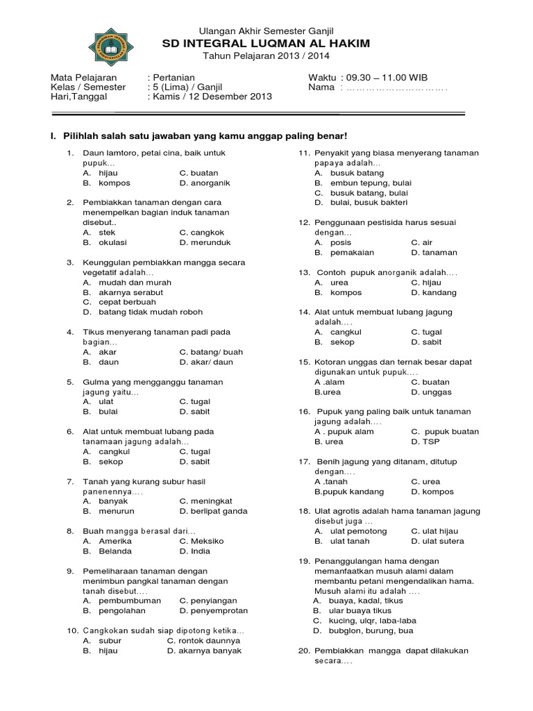 Soal uas tik sd kelas 2 docx. Soal pts tik/mulok komputer kelas 5 sd semester 2 ini admin buat untuk melengkapi bonus kepada para pengunjung yang sudah membeli modul tik/komputer kelas 5 sd melalui website modulkomputer.com ini. Program semester pertanian kelas 3 smt 2.doc. Penilaian akhir semester (pas) biasa juga disebut uas/ukk (ujian kenaikan kelas). Ragam soal bahasa inggris kelas 3 terbagi dalam beberapa bagian.